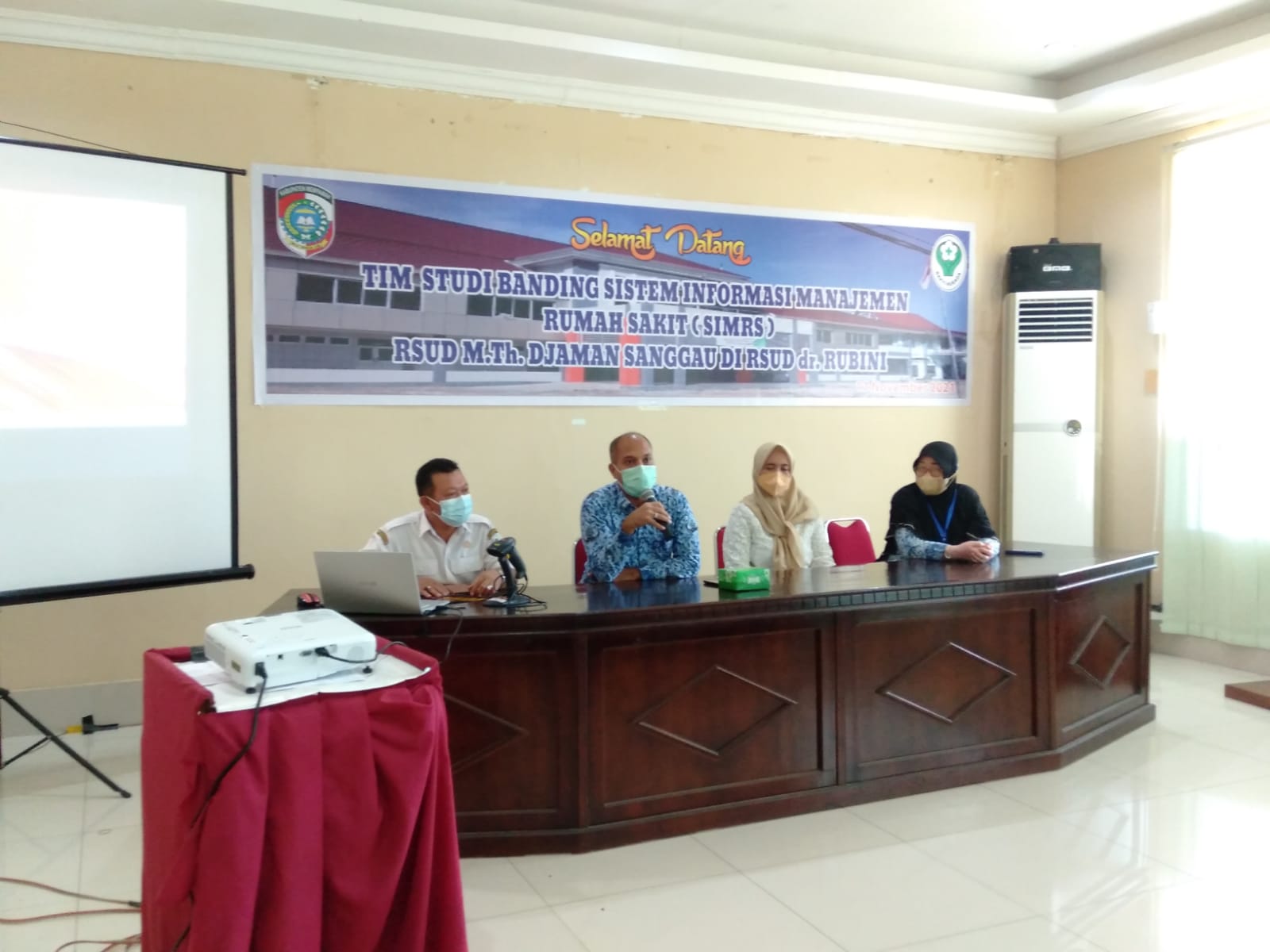 Mempawah - Pada tanggal 17 November 2021, RSUD dr. Rubini Mempawah menerima kunjungan Tim Studi Banding Sistem Informasi Manajemen Rumah Sakit (SIMRS) RSUD M.Th Djaman Sanggau. Kegiatan ini dibuka secara langsung oleh Direktur RSUD dr. Rubini Mempawah, dr. David V.P. Sianipar, M.Kes dan dihadiri oleh perwakilan Manajemen (Kepala Bidang Pengendalian, Penunjang dan Pelayanan), Instalasi Rekam Medis, Instalasi Farmasi, dan Tim IT. Tim studi banding RSUD M.Th Djaman Sanggau berjumlah 13 Orang yang dipimpin oleh Kepala Bidang Penunjang, Bapak Paulinus Udin, S.Ap.M.Ling. Kegiatan diawali dengan pembacaan doa yang dilanjutkan dengan acara pembukaan, dan kemudian penyampaian materi dilakukan oleh Tim IT, Rekam Medis, dan Farmasi RSUD dr. Rubini Mempawah.