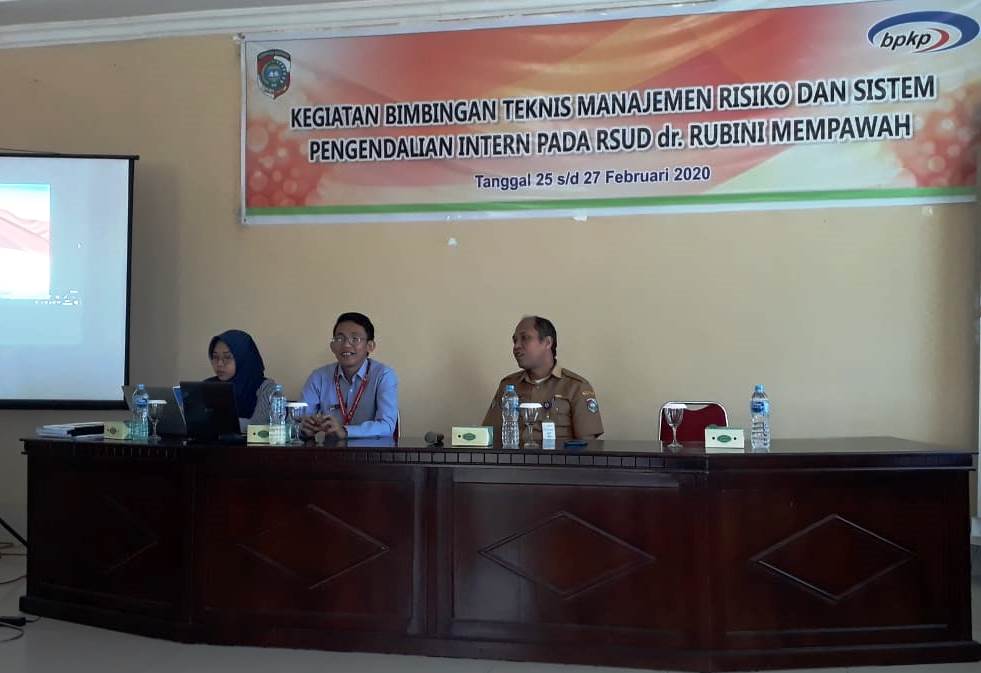 Mempawah – Pada tanggal 25-27 Februari 2020, RSUD dr. Rubini Mempawah bekerja sama dengan BPKP Provinsi Kalimantan Barat mengadakan kegiatan Bimbingan Teknis mengenai Manajemen Risiko dan Sistem Pengendalian Internal di RSUD dr. Rubini Mempawah.