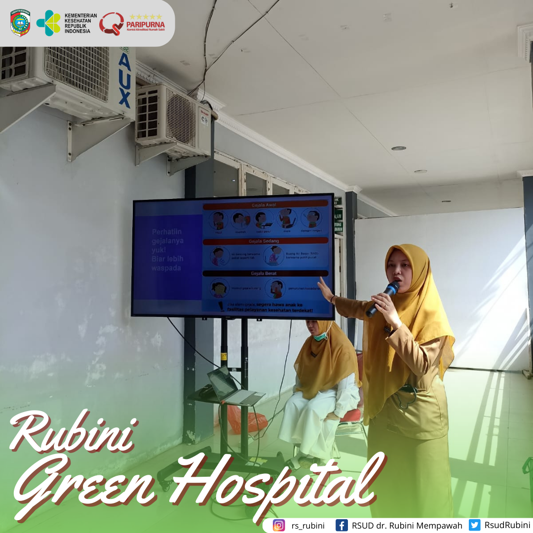 PKRS RSUD dr. Rubini Mempawah bekerja sama dengan Instalasi Kesehatan Lingkungan RSUD dr. Rubini Mempawah mengadakan penyuluhan dengan tema Pencegahan dan Pengendalian Lingkungan Penyakit Demam Berdarah Dengue (DBD)