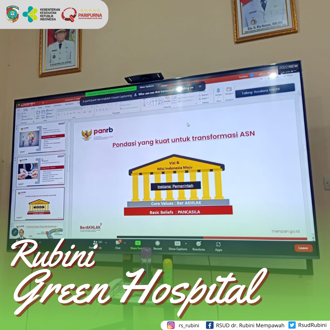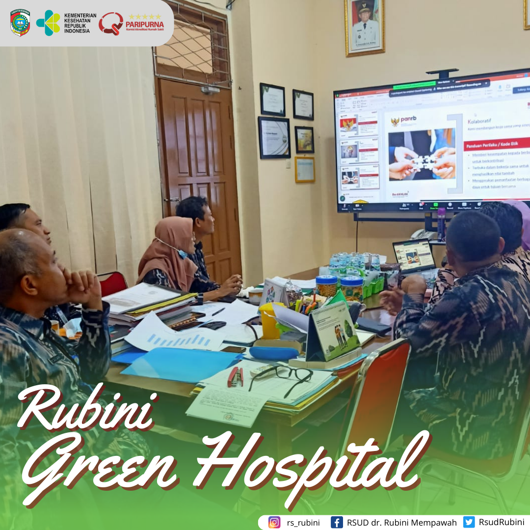 Kegiatan zoom meeting Coaching Clinic Budaya Kerja ASN diruang Direktur RSUD dr. Rubini Mempawah