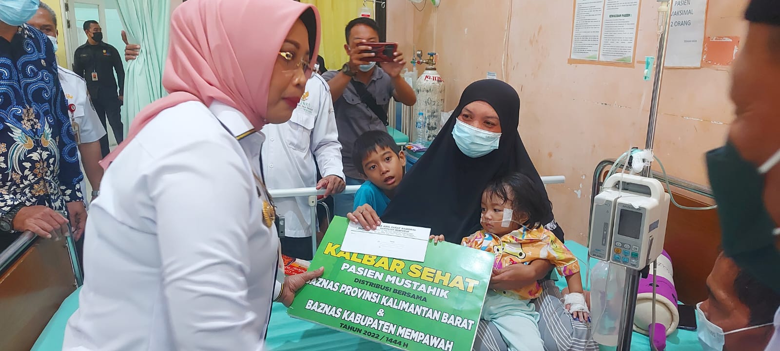 Penyerahan Santunan yang diberikan langsung Bupati Mempawah, Hj. Erlina Kepada Pasien Rawat Inap RSUD dr. Rubini Mempawah oleh Badan Amil Zakat ( BAZNAS ) Kabupaten Mempawah